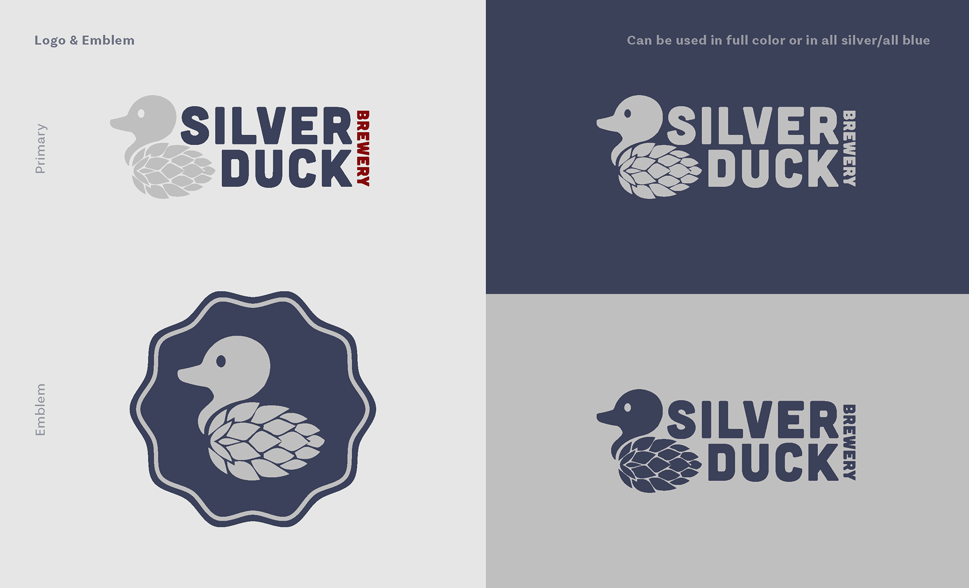 Silver Duck Brewing Company is a branding concept for a brewery based out of Philadelphia. This brand book includes all branding elements and different design artifacts to compliment the brand.